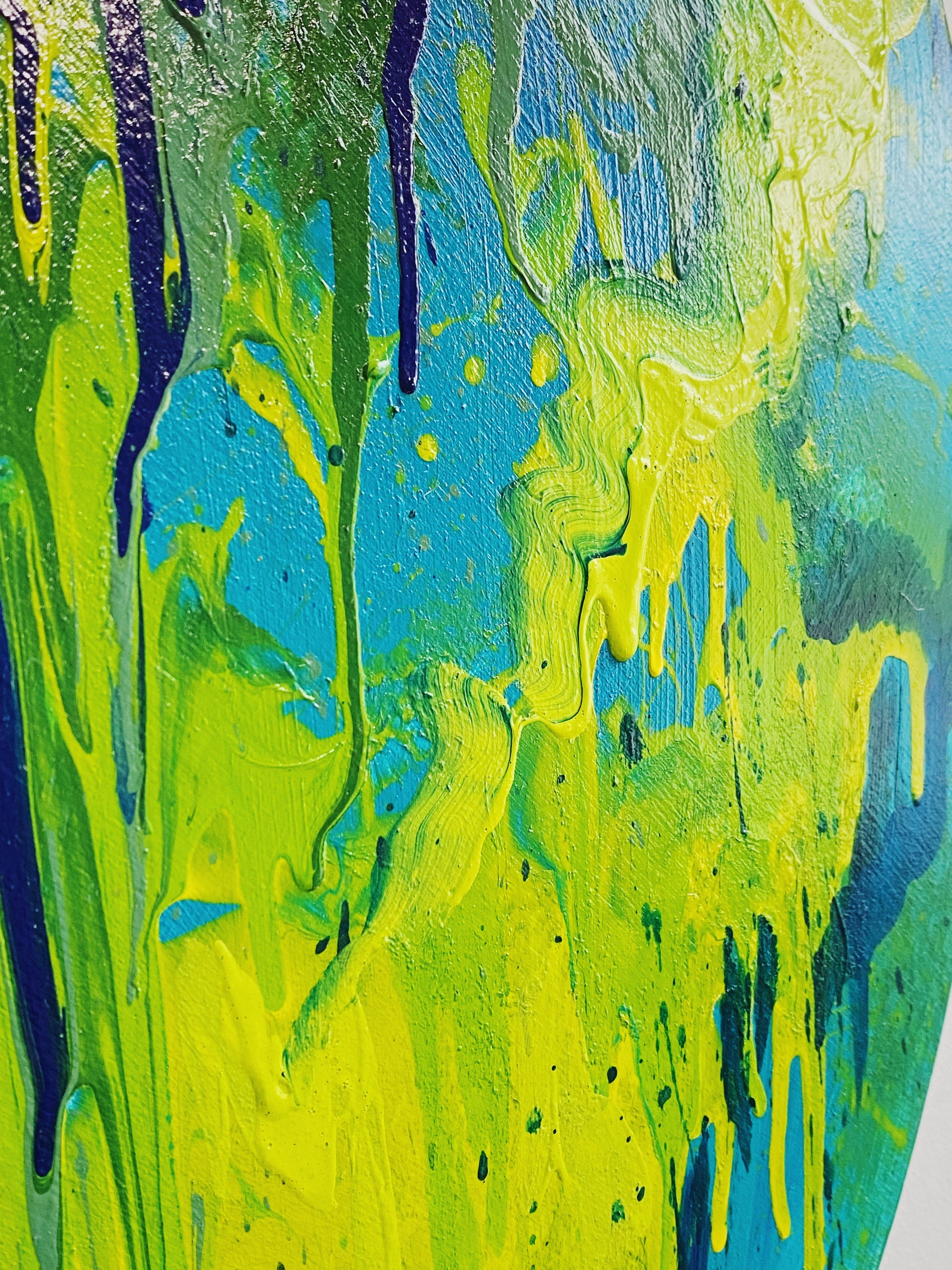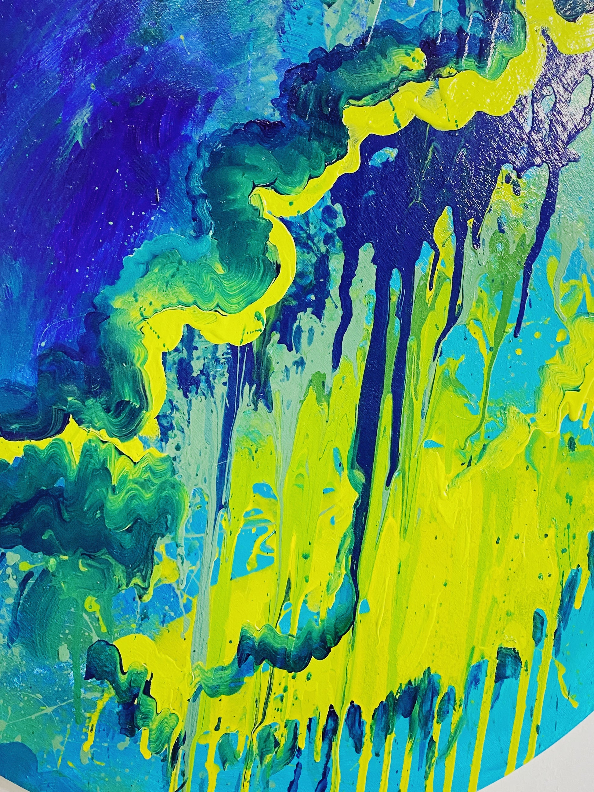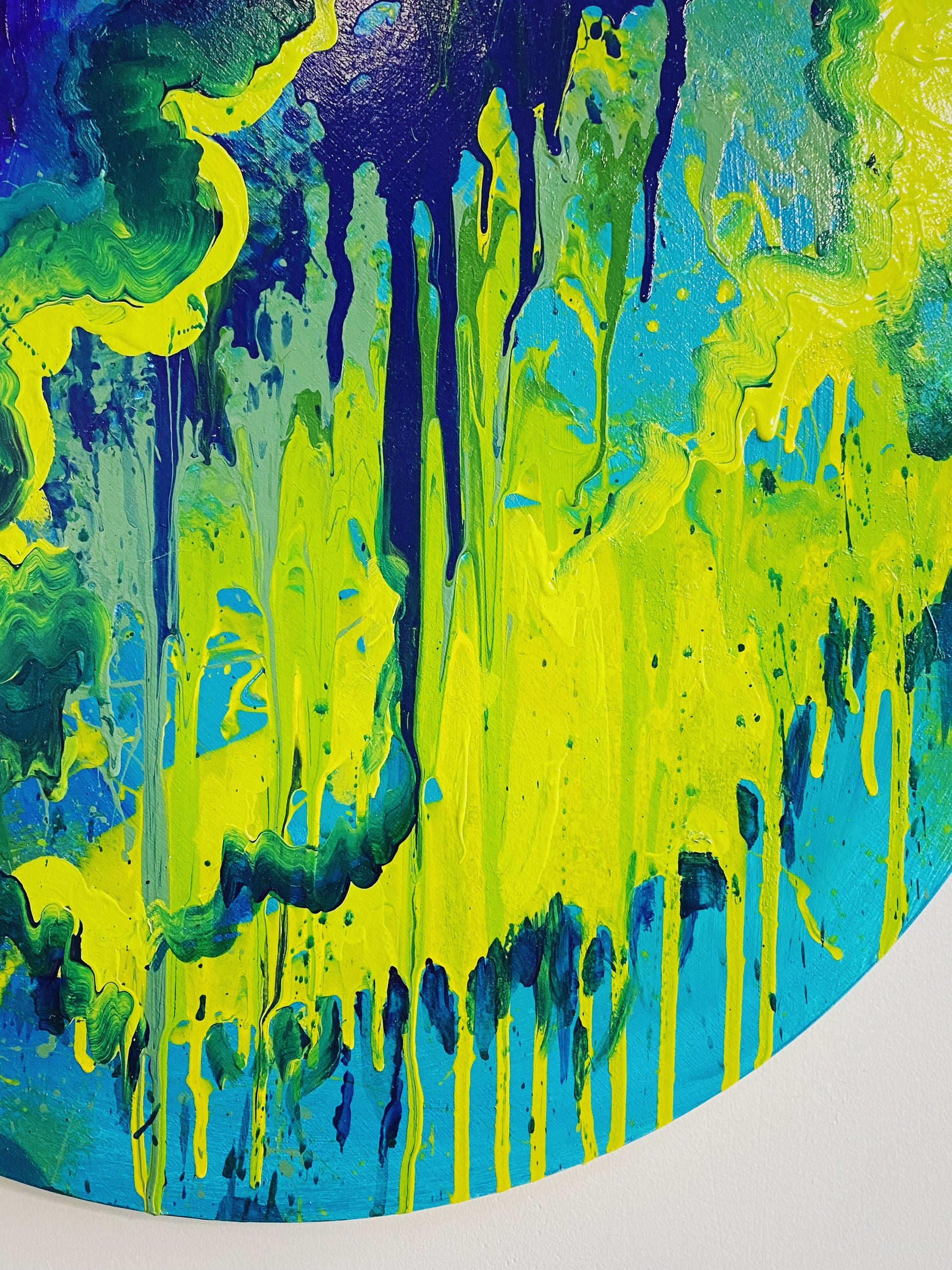 original abstract painting, acrylic on wood panel. 24" in diameter.